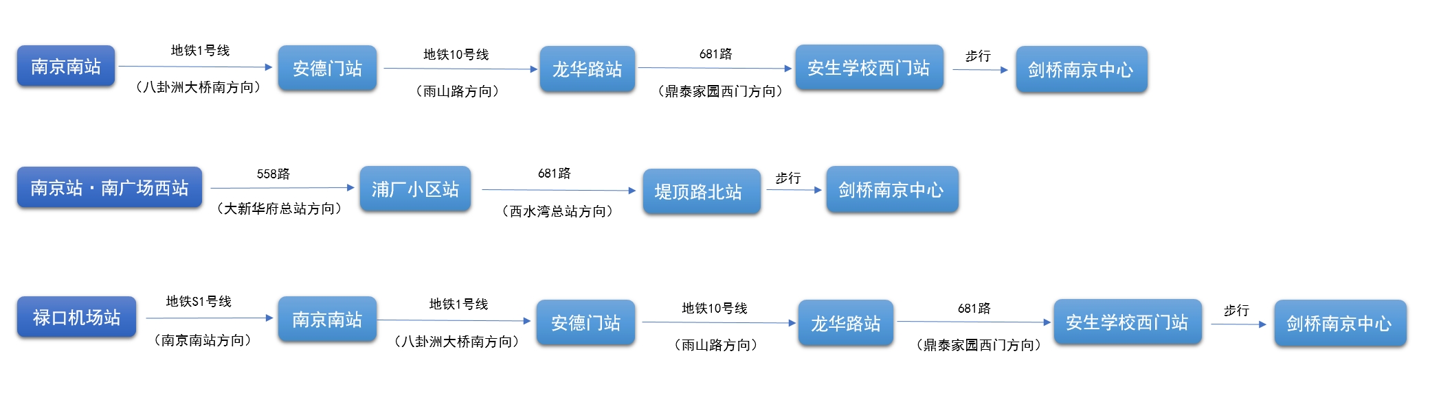 从南京南站、南京站以及南京禄口机场均可便捷到达。