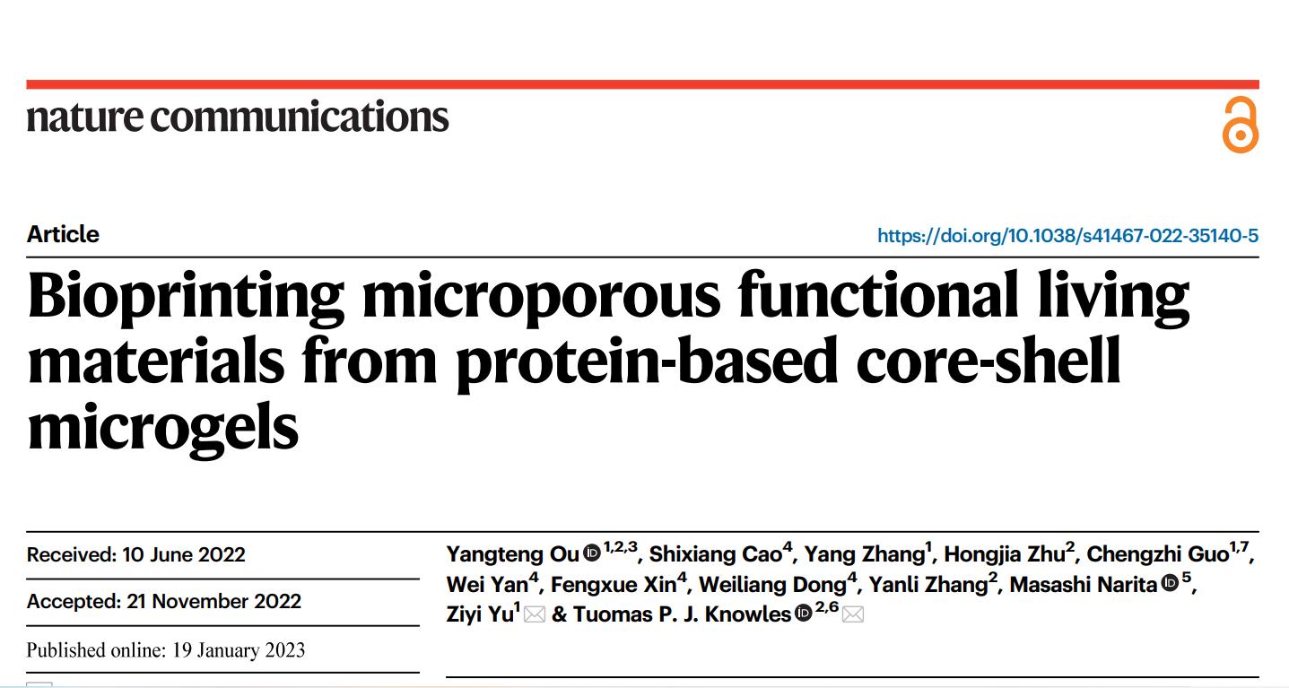 祝贺您1月在《自然通讯》上发表了题为Bioprinting microporous functional living materials from protein-based core-shell microgels的论文,请您介绍一下这篇论文的研究创新点和具体的研究成果?这些研究成果有何应用前景?